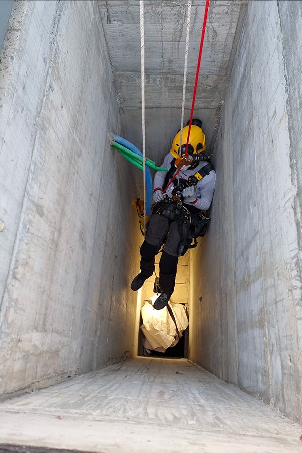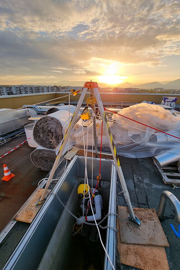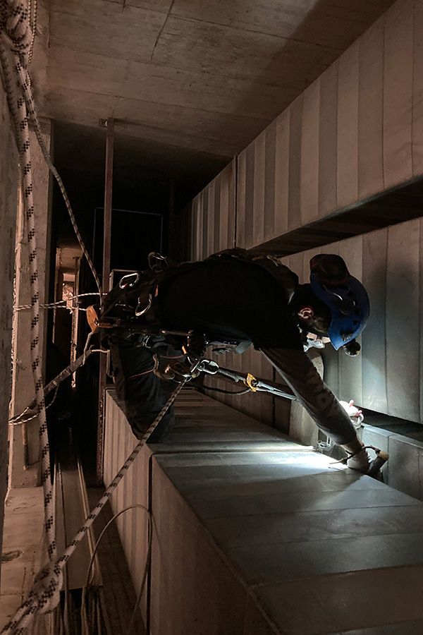 Démantèlement en espace confiné de plusieurs gaines de ventilation dans 2 courettes de 3,2m x 2,5m sur des hauteur de 30m. puis montage de plusieurs gaines aérauliques.
