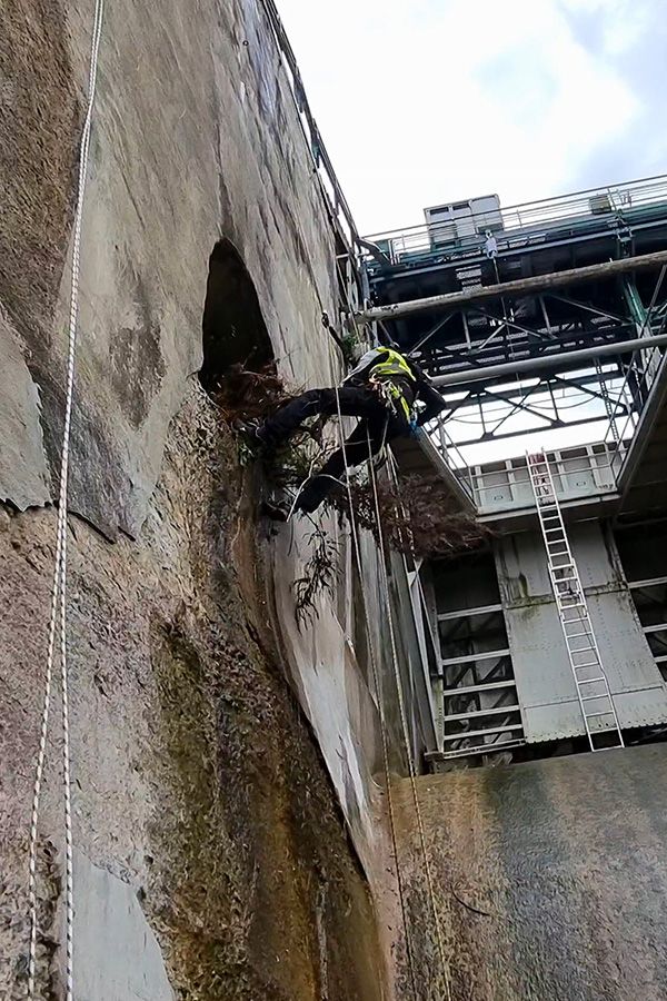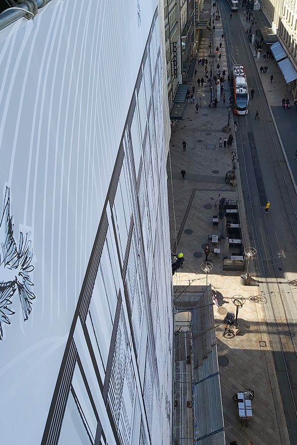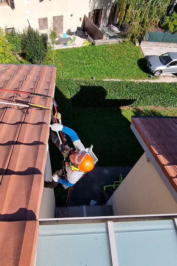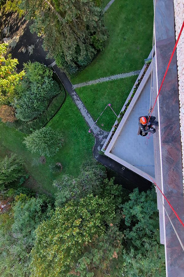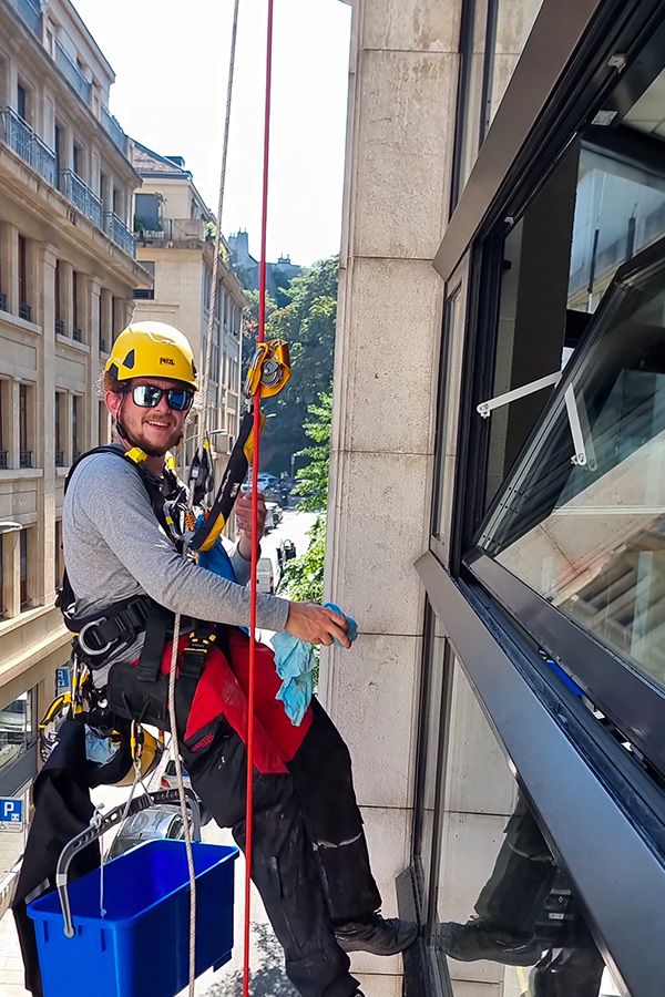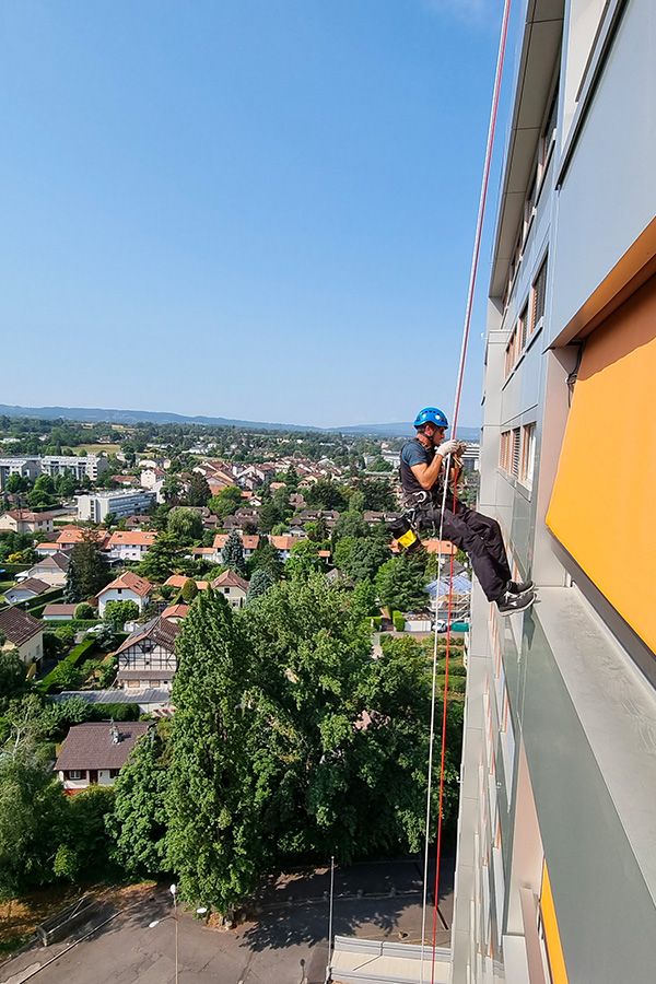 En milieu urbain, nous sommes sollicités pour des travaux sur corde lorsque les méthodes traditionnellement mises en place sont trop lourdes ou simplement moins adaptées que des solutions alternatives avec encordement. Selon la nature des travaux, l’encordement n’est pas toujours la seule solution : nous adaptons la méthodologie en fonction des besoins et de l’intervention. La corde est complétée par des engins de levage, des échafaudages ou d’autres techniques appropriées.